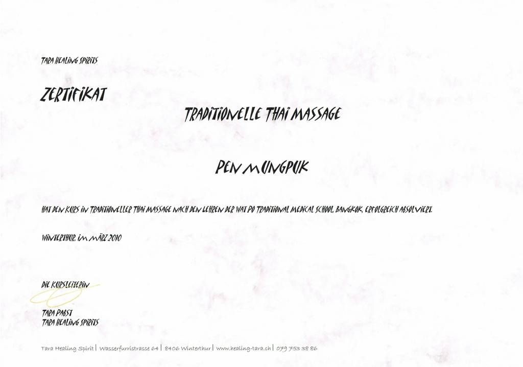 Mein Name ist PEN und ich bin diplomierte Expertin für traditionelle und klassische Thai-Massagen. Mit viel Erfahrung, Feingefühl und echter Freude an meiner Arbeit begleite ich Sie auf Ihrem Weg zu mehr Entspannung, innerer Balance und Wohlbefinden.